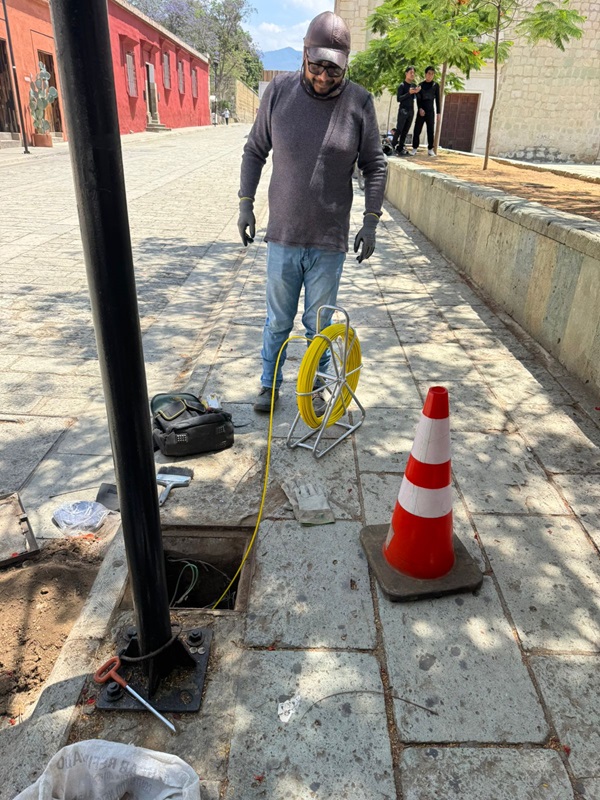 Oaxaca de Juárez, Oax. 29 de mayo de 2025.- Con la finalidad de mejorar los espacios de valor patrimonial, el Gobierno del Estado a través del Instituto del Patrimonio Cultural del Estado de Oaxaca (Inpac), ejecuta el programa “Oaxaca brilla”, mediante el cual se instala iluminación artística en el exconvento de Santo Domingo de Guzmán, ubicado en la ciudad capital.
