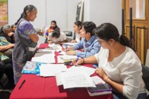 En presencia de la titular de la Coordinación de Comunicación Social, Elizabeth Álvarez Acosta, se recibió en Palacio de Gobierno a mujeres que integran la Unión de Voceadores del Estado de Oaxaca y la Unión de Voceadores y Expendedores de Periódicos, Libros y Revistas del Estado de Oaxaca, quienes recibieron atención directa del personal de la Secretaría de Bienestar, Tequio e Inclusión (Sebienti).