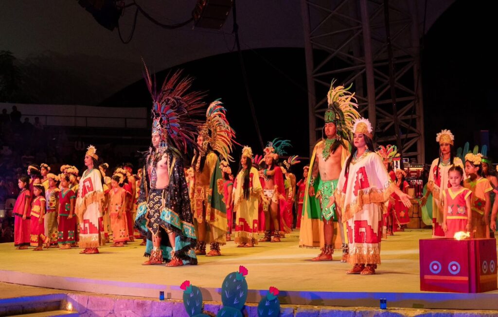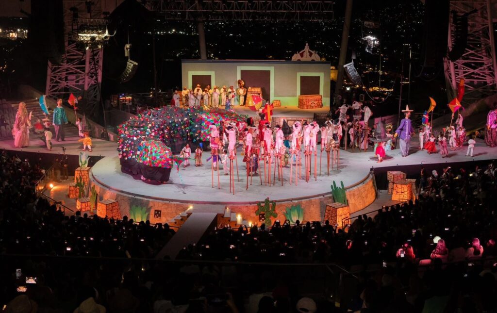 Con más de 300 artistas en escena, música en vivo, danzas tradicionales, escenografías monumentales y vestuarios de épocas llenos de color y simbolismo, esta puesta en escena del Grupo Folklórico de Oaxaca, A.C., retrató con fuerza y sensibilidad cómo nació, se transformó y se consolidó la Guelaguetza.