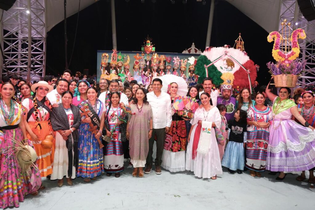 La noche estuvo encabezada por el Gobernador Salomón Jara Cruz y la Presidenta Honoraria del DIF Oaxaca, Irma Bolaños Quijano, quienes presenciaron el acto junto a la representante de la Diosa Centéotl 2025, Patricia Casiano Zaragoza.