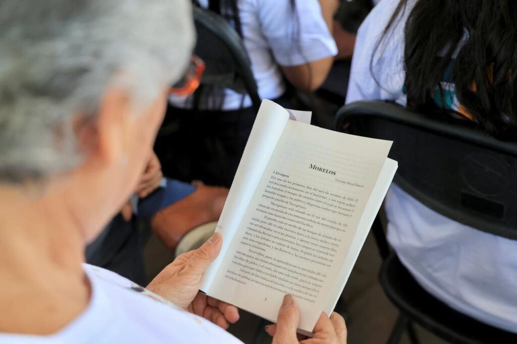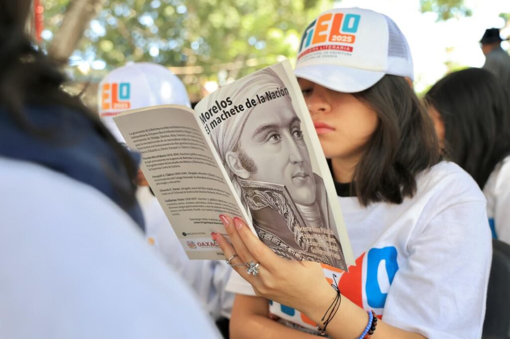 • Frente a jóvenes de preparatoria, el Gobernador de Oaxaca compartió, en voz alta, el libro “Morelos, el machete de la nación” y destacó la relevancia del hábito por los libros