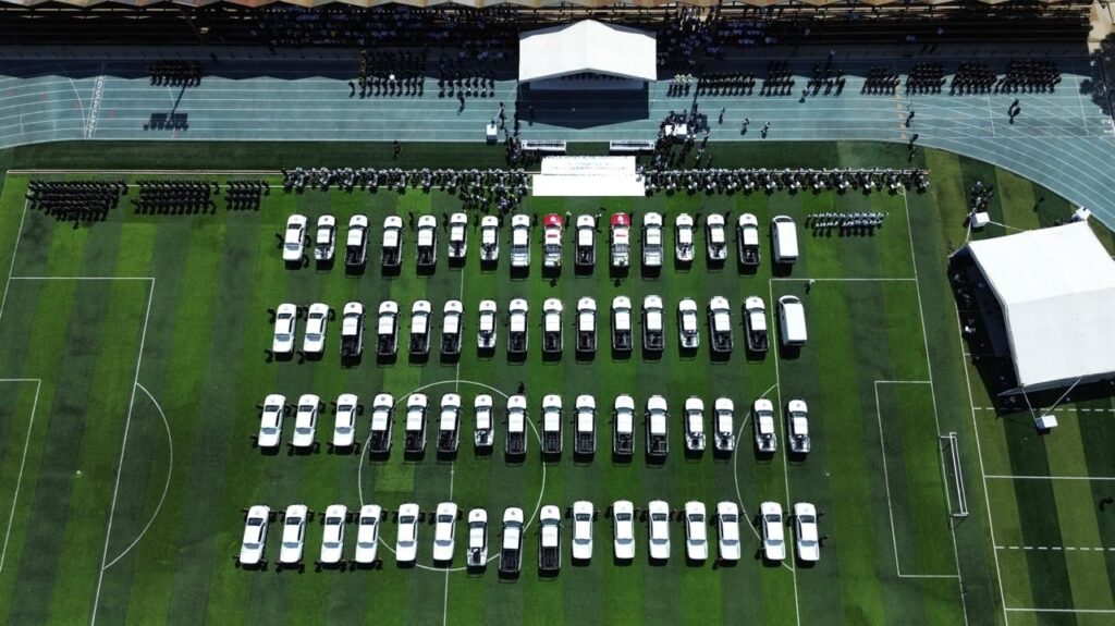 • Se hizo el reparto de 67 camionetas pick up equipadas como patrullas, 23 bicicletas eléctricas, 27 motocicletas y 75 fusiles de asalto
