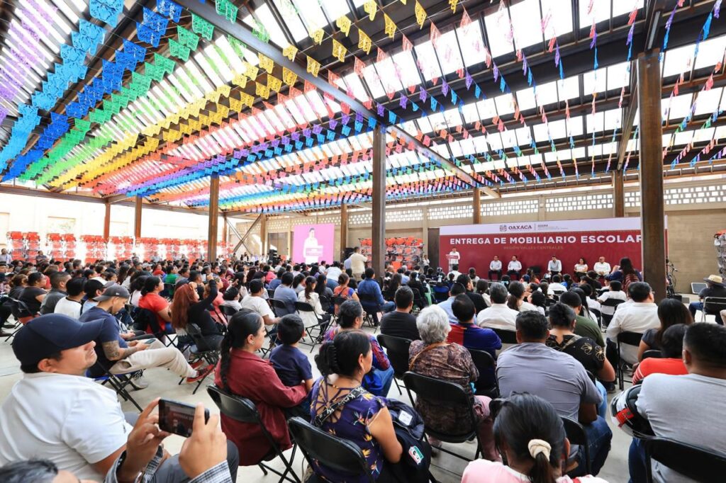 En un acto histórico, el Gobierno de Oaxaca ha dotado de mobiliario nuevo a 11 mil 630 escuelas ubicadas en las ocho regiones de la entidad, de las cuales, en más de 6 mil 200, el Gobernador ha autorizado directamente el material, en sus visitas a las comunidades.