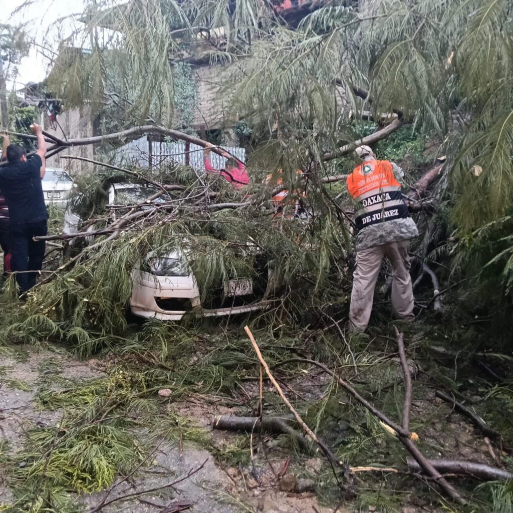 Oaxaca de Juárez, Oax., 5 de octubre de 2025.- En atención a reportes ciudadanos derivados de las lluvias recientes, la Dirección de Protección Civil Municipal de Oaxaca de Juárez actuó de manera inmediata ante la caída de árboles registrada en distintos puntos de la capital.