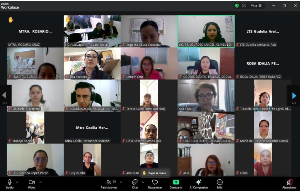 Oaxaca de Juárez, Oax., 12 de octubre de 2025.- Para fortalecer las competencias del personal y brindar una atención integral y humana a pacientes que enfrentan enfermedades crónicas o avanzadas, Servicios de Salud de Oaxaca (SSO) realizó una jornada de capacitación dirigida a las y los trabajadores sociales de los hospitales de la Mujer y la Niñez y de la Niñez Oaxaqueña Doctor Guillermo Zárate Mijangos.