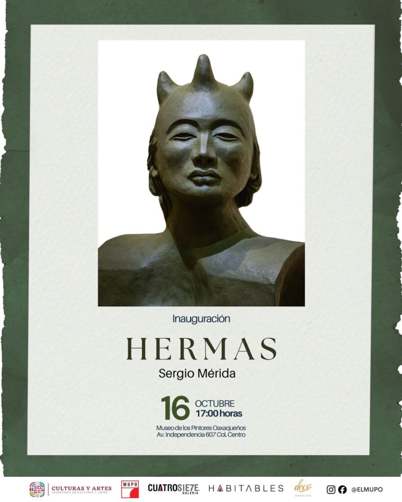 Oaxaca de Juárez, Oax. 15 de octubre de 2025.- La Secretaría de las Culturas y Artes (Seculta) invita al público en general a la inauguración de la exposición escultórica “Hermas”, del artista oaxaqueño Sergio Mérida, que se llevará a cabo este jueves 16 de octubre a las 17:00 horas.