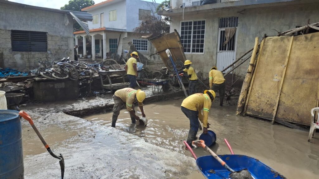 Brigadistas combatientes forestales de la Coesfo realizan un trabajo continúo en la pica y desrame de árboles caídos, limpieza de 36 calles y retiro de material acarreado por el agua; además de apoyo directo a 76 viviendas afectadas. Su esfuerzo ha permitido restablecer el tránsito vehicular y las condiciones de seguridad en colonias como 25 de Abril y Pantepec.
