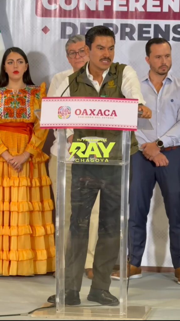Oaxaca de Juárez, Oax., 29 de octubre de 2025.- El presidente municipal de Oaxaca de Juárez, Ray Chagoya, acompañó al gobernador Salomón Jara Cruz en la conferencia de prensa donde se presentaron dos importantes proyectos de inversión privada para la capital: un complejo comercial de primer nivel y un nuevo complejo médico que fortalecerán la economía local y la calidad de vida de las familias oaxaqueñas.