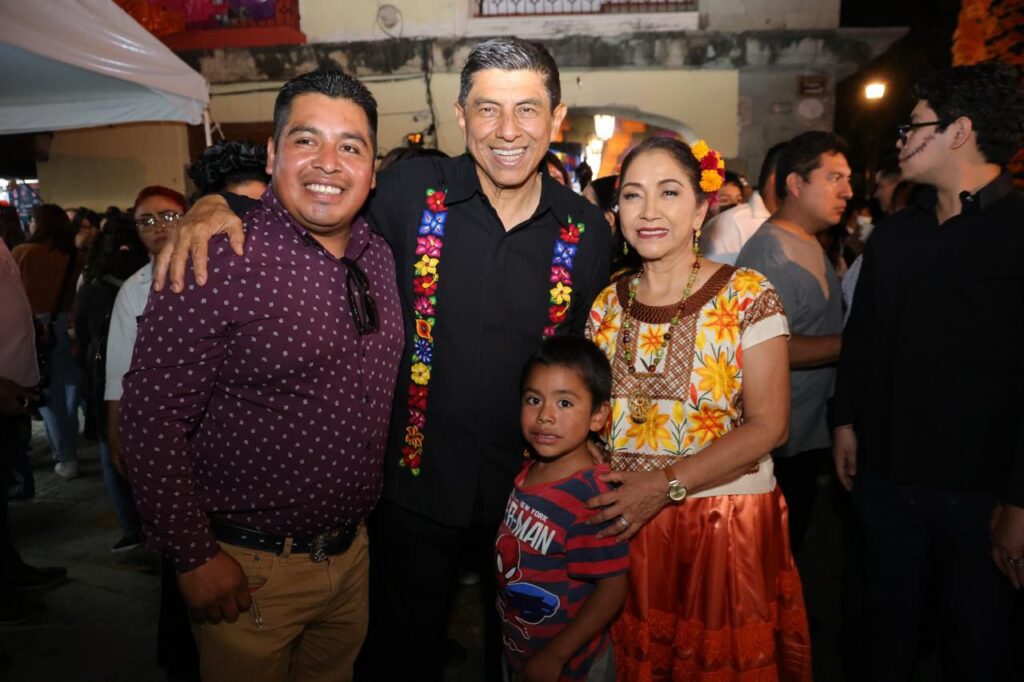 De esta manera, el Mandatario estatal invitó a las personas a disfrutar de las diversas actividades programadas en el marco del Día de Muertos “La fiesta más viva de todas”, como el Altar Monumental y la recreación de la Tumba Fría o Tumba 1 de San Pablo Villa de Mitla, instalados en el patio central de Palacio de Gobierno.