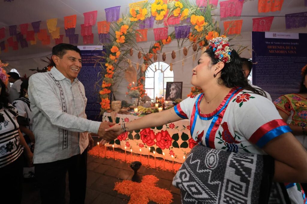 En un ambiente repleto de sincretismo, el Gobernador Salomón Jara Cruz y la Presidenta Honoraria del Sistema DIF Oaxaca, Irma Bolaños Quijano recorrieron esta “Exhibición y Representación de Altares Tradicionales del Día de Muertos de Oaxaca”; que muestra al público la riqueza de las culturas: zapoteca, chatina, mixe, mazateca, mixteca, tacuate, ikoots, chocholteca, cuicateca y triqui.
