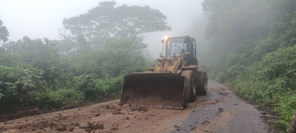 Cabien reporta dos zonas críticas con derrumbes sobre la carpeta asfáltica, que por su complejidad y riesgo se atenderán con precaución; no obstante se ha habilitado un paso lateral.