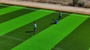 • La primera etapa incluye la cancha de fútbol con pasto sintético y porterías; se continúa con instalaciones complementarias y de servicios
