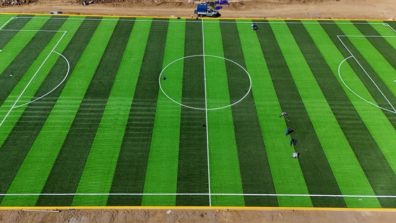 • La primera etapa incluye la cancha de fútbol con pasto sintético y porterías; se continúa con instalaciones complementarias y de servicios