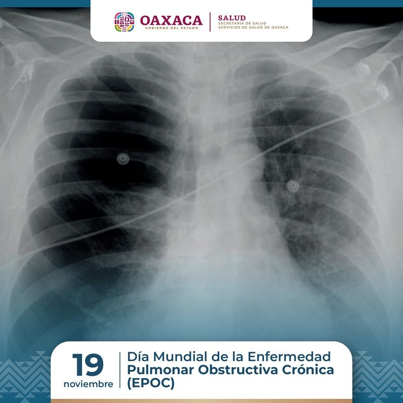 Oaxaca de Juárez, Oax. 19 de noviembre de 2025.- En el marco del Día Mundial de la Enfermedad Pulmonar Obstructiva Crónica (EPOC), que se conmemora cada tercer miércoles de noviembre, Servicios de Salud de Oaxaca (SSO) llama a la población a identificar oportunamente los síntomas de este padecimiento y acudir a una valoración médica.