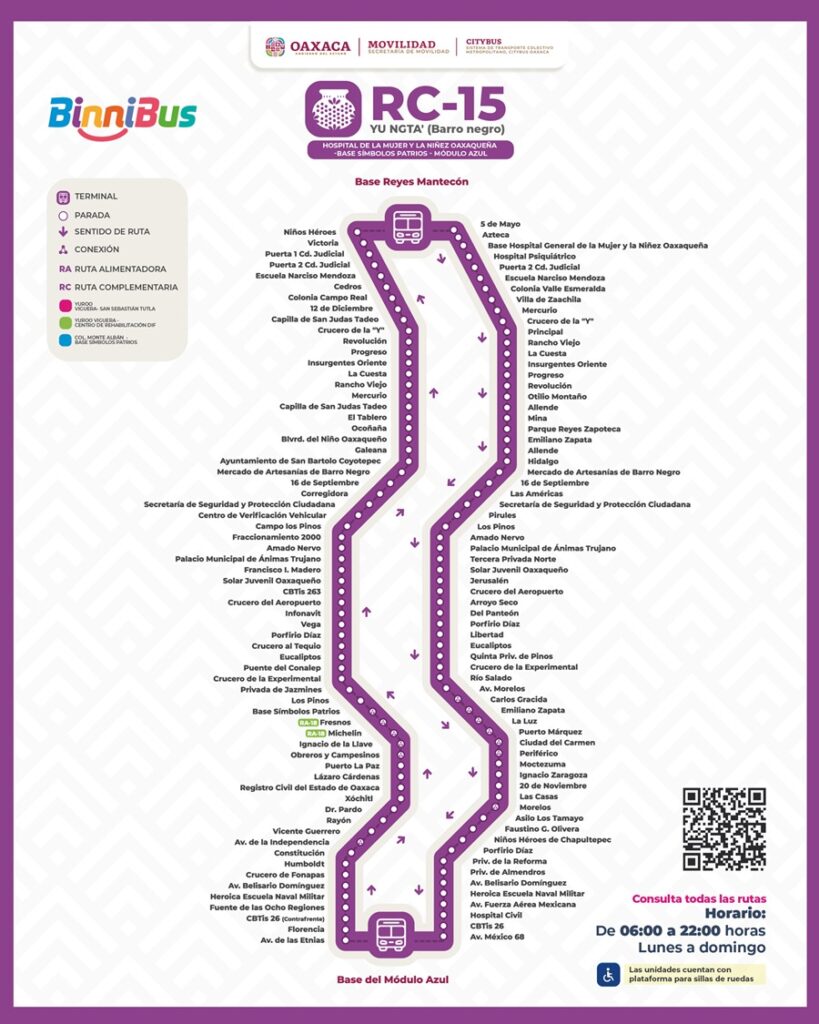 Oaxaca de Juárez, Oax. 20 de noviembre de 2025.- El Sistema de Transporte Colectivo Metropolitano BinniBus informa que, a partir de este 20 de noviembre, entran en operación las ampliaciones de las rutas RC06 Mondok (pescadores) y RC15 Yu Ngta’ (barro negro), para mejorar la movilidad de la población.