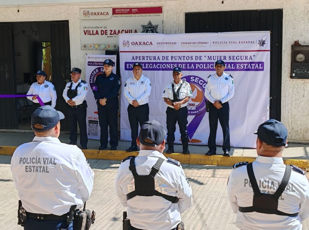 Oaxaca de Juárez, Oax., 22 de noviembre de 2025.- El Gobierno de Oaxaca a través de la Policía Vial Estatal, habilitó seis Puntos Mujer Segura en sus delegaciones de Villa de Zaachila, Zimatlán de Álvarez, Ocotlán de Morelos, Tlacolula de Matamoros, San Pablo Villa de Mitla y en el fraccionamiento El Rosario de San Sebastián Tutla.