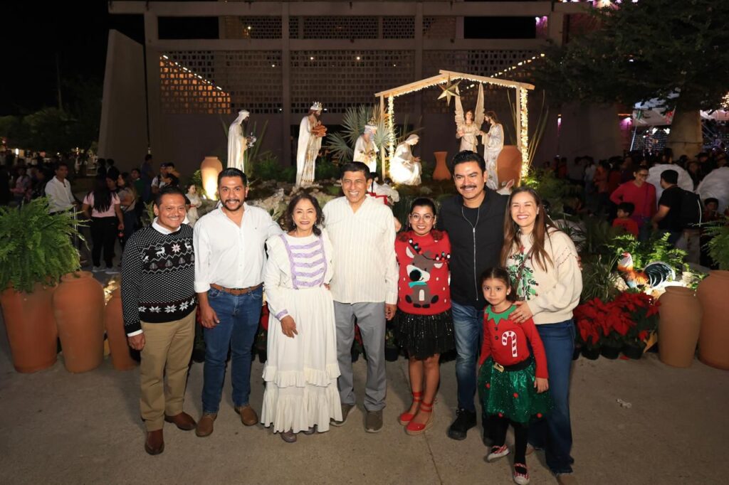“Oaxaca se ilumina no sólo con luces de este árbol de navidad, símbolo de esperanza, sino con los valores que nos distinguen: la paz, solidaridad, unidad y calidez de las familias”, expresó.