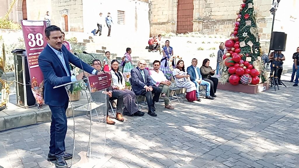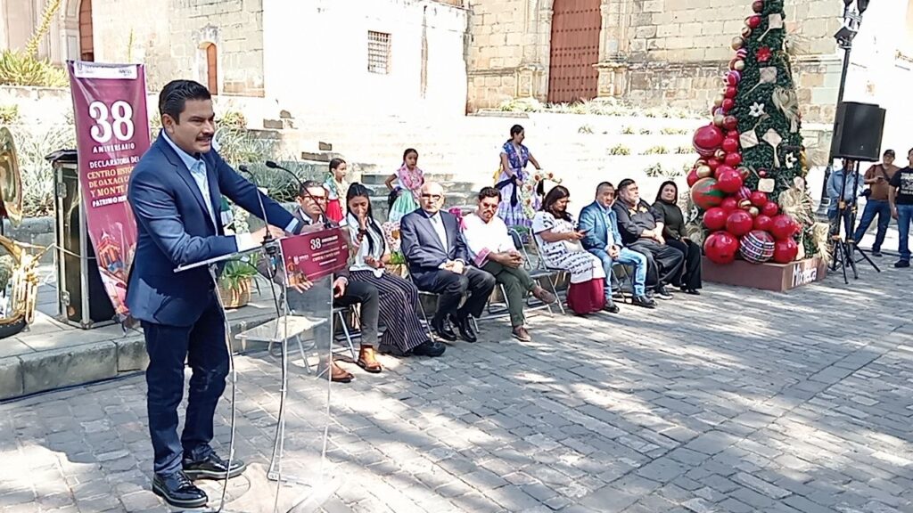 Oaxaca de Juárez, Oax. 11 de diciembre de 2025.- El Municipio de Oaxaca de Juárez celebró este 11 de diciembre el 38 aniversario del reconocimiento del Centro Histórico de la capital y de la zona arqueológica de Monte Albán como Patrimonio Cultural de la Humanidad, otorgado por la UNESCO en 1987.