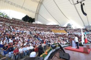 Ante más de 12 mil personas concentradas en el Auditorio Guelaguetza, el Mandatario estatal destacó junto a la Presidenta Honoraria del Sistema DIF Oaxaca, Irma Bolaños Quijano, que se han realizado de manera directa en las comunidades, diversas acciones en el campo, salud, educación y seguridad; sin endeudar al Estado.