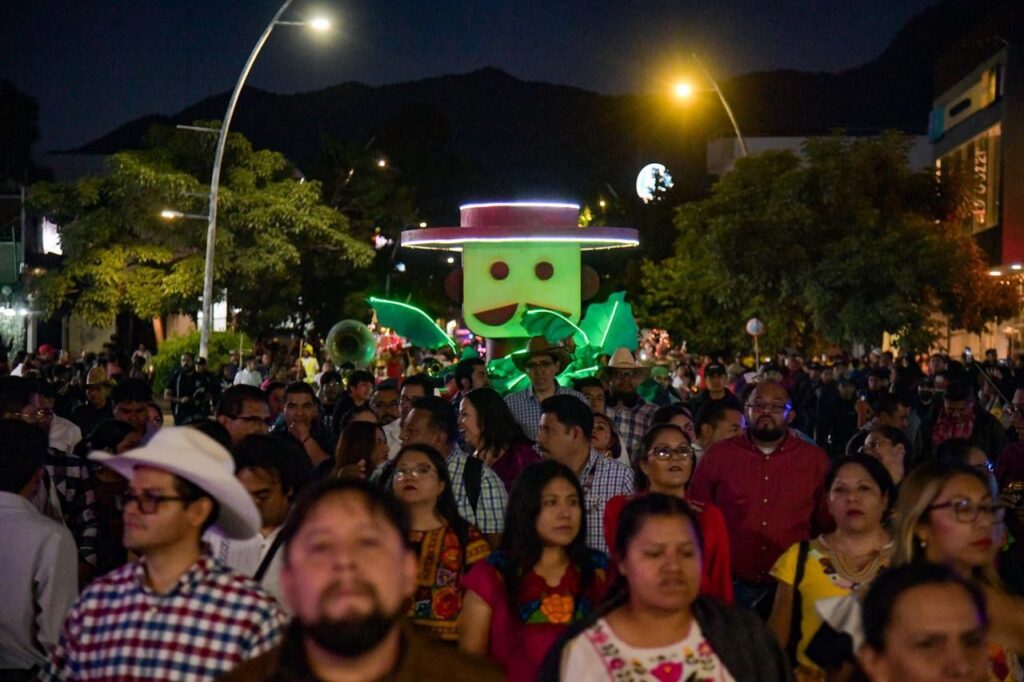 A lo largo del recorrido, niñas y niños acompañados por sus familias disfrutaron de las seis mojigangas de rábanos gigantes y los carros empujables: el horticultor, el agricultor, la muñeca de flor inmortal y el Niño Danzante. A ello se sumaron carros alegóricos de diversas dependencias estatales, decorados con motivos alusivos a los 128 años de tradición de la emblemática Noche de Rábanos.