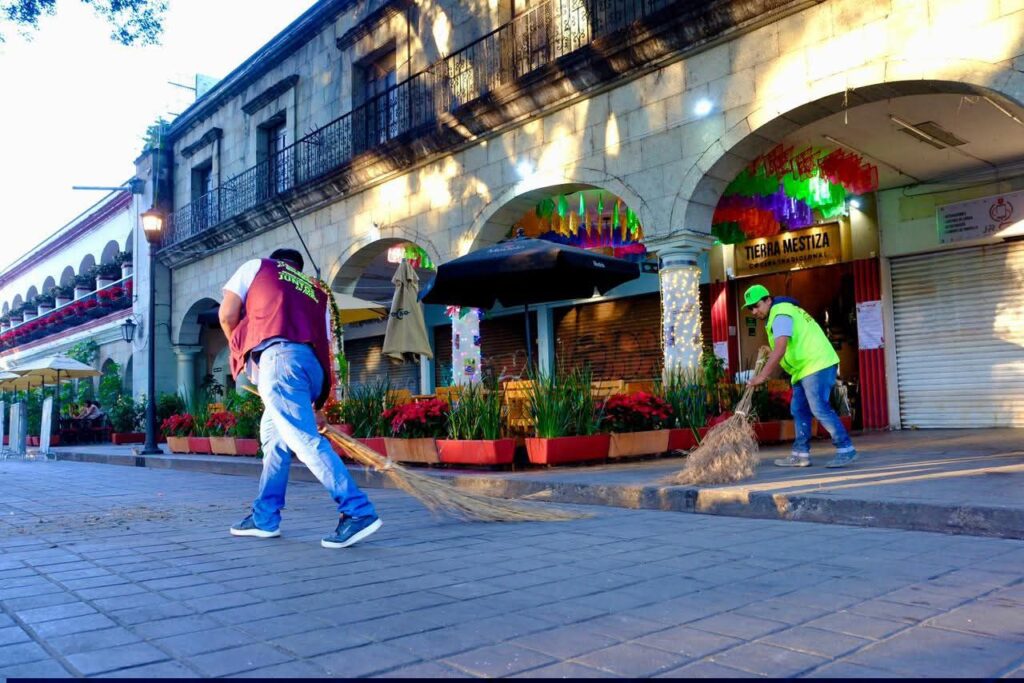 El tequio contempla barrido manual y mecánico, recolección de basura, limpieza de jardineras y atención puntual en las zonas de mayor afluencia, reafirmando el compromiso de mantener en óptimas condiciones el corazón de la ciudad, tanto para vecinas y vecinos como para visitantes.