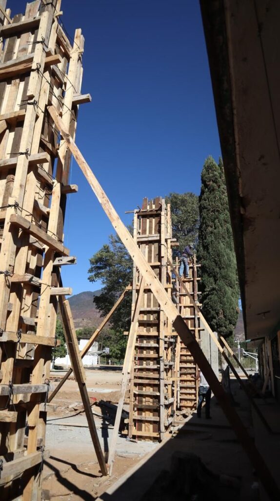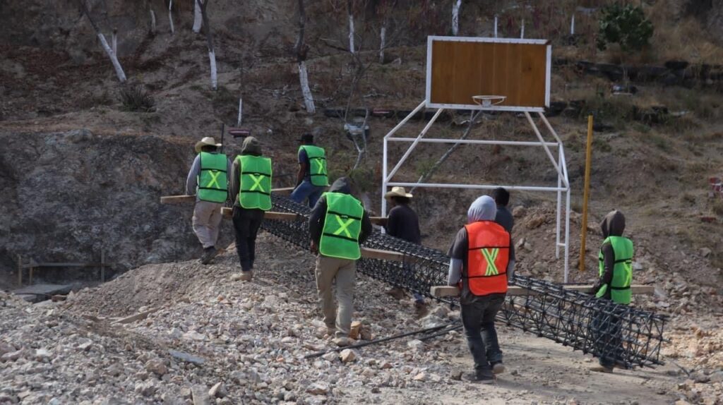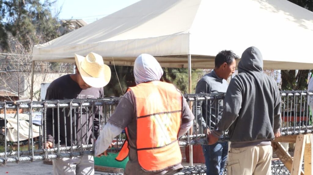 De igual forma, en la Agencia Municipal de Trinidad de Viguera, avanza la construcción de un techado en una telesecundaria, atendiendo una solicitud expresada durante la gira de trabajo y proyectando un beneficio directo para 329 alumnas y alumnos.