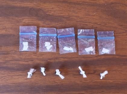Al levantar la bolsa, observaron que al interior, guardaba cinco bolsitas tipo ziploc, con una guía de color azul, la cual contenía una sustancia granulada, color blanco, similar a la droga conocida como cristal.