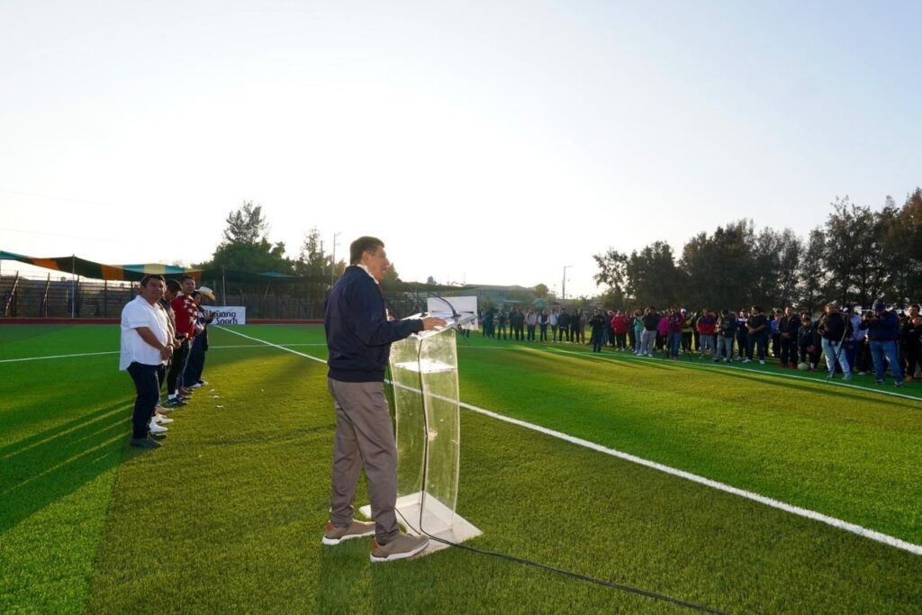 Cumple Salomón Jara en Miahuatlán; entrega cancha de futbol 11 rehabilitada para desarrollo de niñez y adolescencia en ambiente de paz