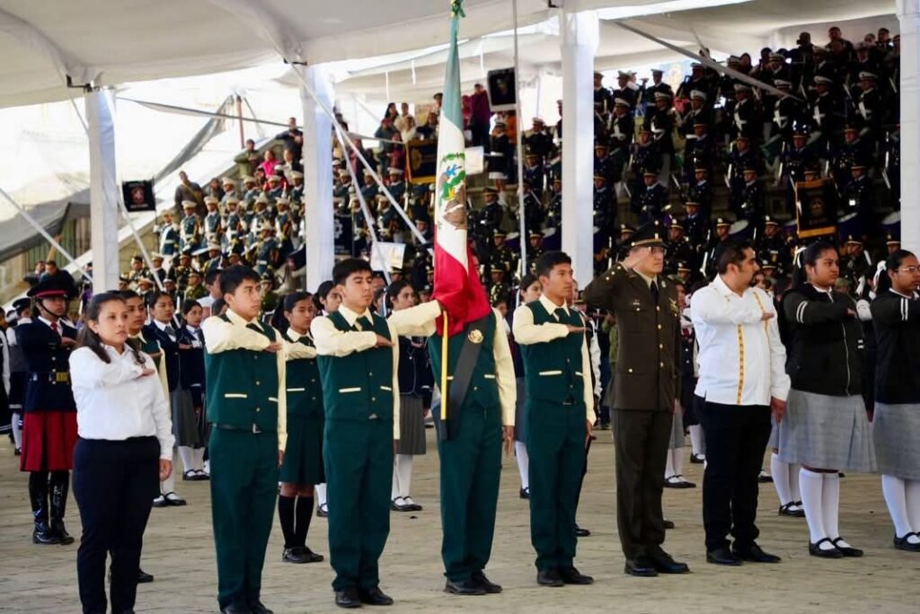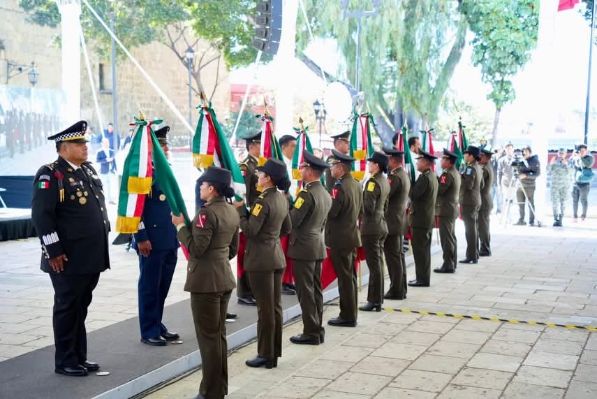 Desde Oaxaca de Juárez se rindió homenaje a la Bandera Nacional, recordando que sus colores representan el sacrificio, la esperanza y la fortaleza del pueblo mexicano.