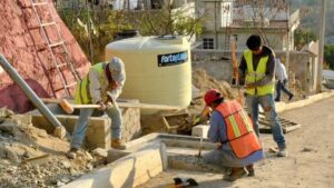 En la zona se llevan a cabo trabajos de pavimentación, construcción de banquetas y guarniciones, acciones que fortalecen la movilidad y brindan mayor seguridad para las vecinas y vecinos.