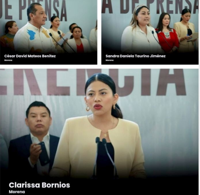 En conferencia de prensa, acompañados por las coordinadoras de los partidos PVEM y Fuerza por Oaxaca, legisladora Melina Hernández Sosa y diputada María Eulalia Velasco Ramírez, así como el diputado de Grupo Plural, Mauro Cruz Sánchez, la diputada por Morena Sandra Daniela Taurino Jiménez, en su participación, reconoció los avances del programa Oaxaca Segura, mediante el cual se inauguró la primera etapa de rehabilitación de 242 calles con Senderos Seguros, la instalación de 762 luminarias y el mejoramiento de 735 más; la renovación de 496 fachadas, así como la colocación de 349 cámaras de videovigilancia y 78 botones de auxilio.