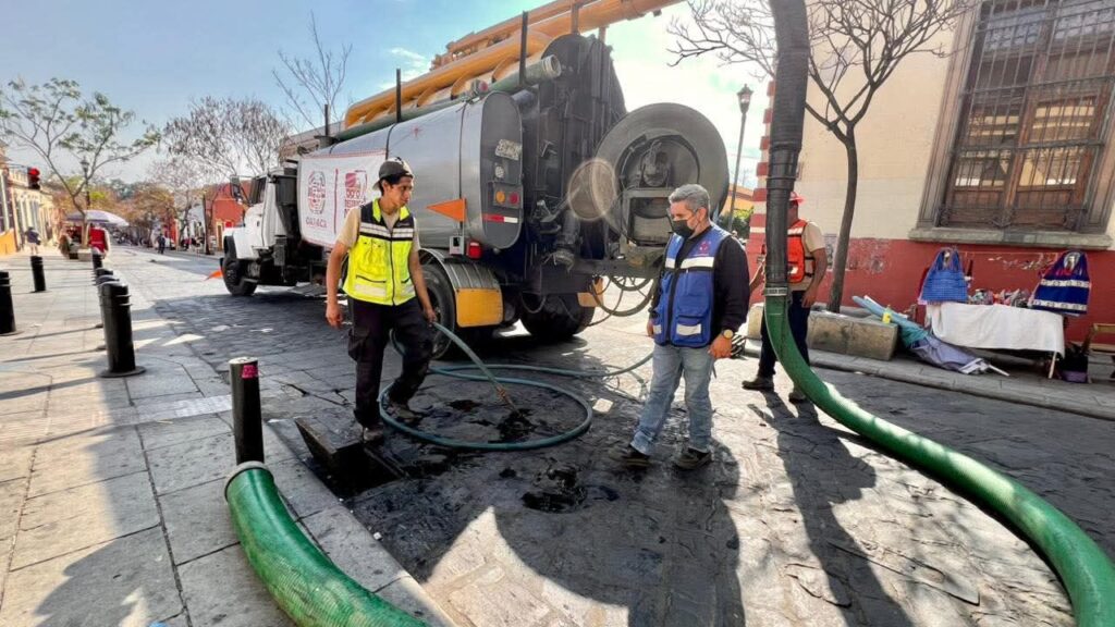El Municipio de Oaxaca de Juárez, en coordinación con el Gobierno del Estado, realizó trabajos de desazolve en la calle Manuel García Vigil, del Centro Histórico, como parte del programa Destape al Drenaje.
