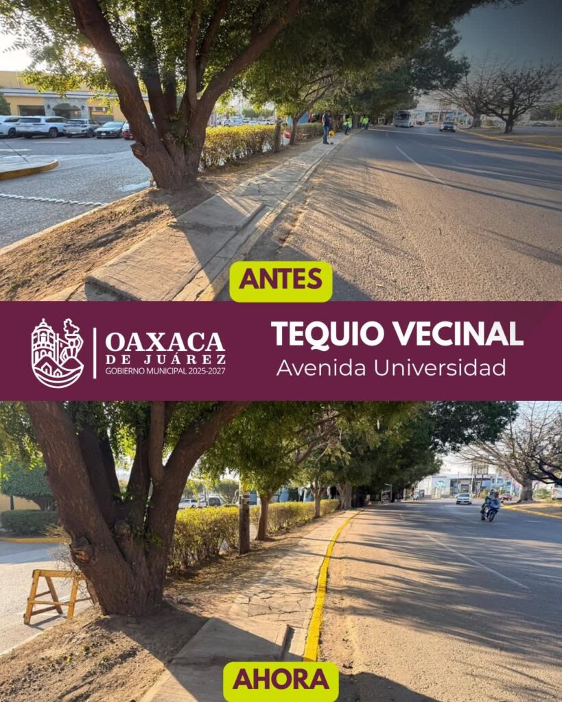 Con estas jornadas de tequio, el Gobierno Municipal refrenda su compromiso de seguir recorriendo el territorio y atendiendo de manera directa los espacios públicos de la capital oaxaqueña.