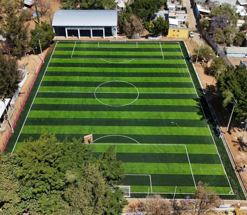 Inaugura Salomón Jara cancha con pasto sintético y techado en San Martín Mexicapam, espacio que fomenta la integración social