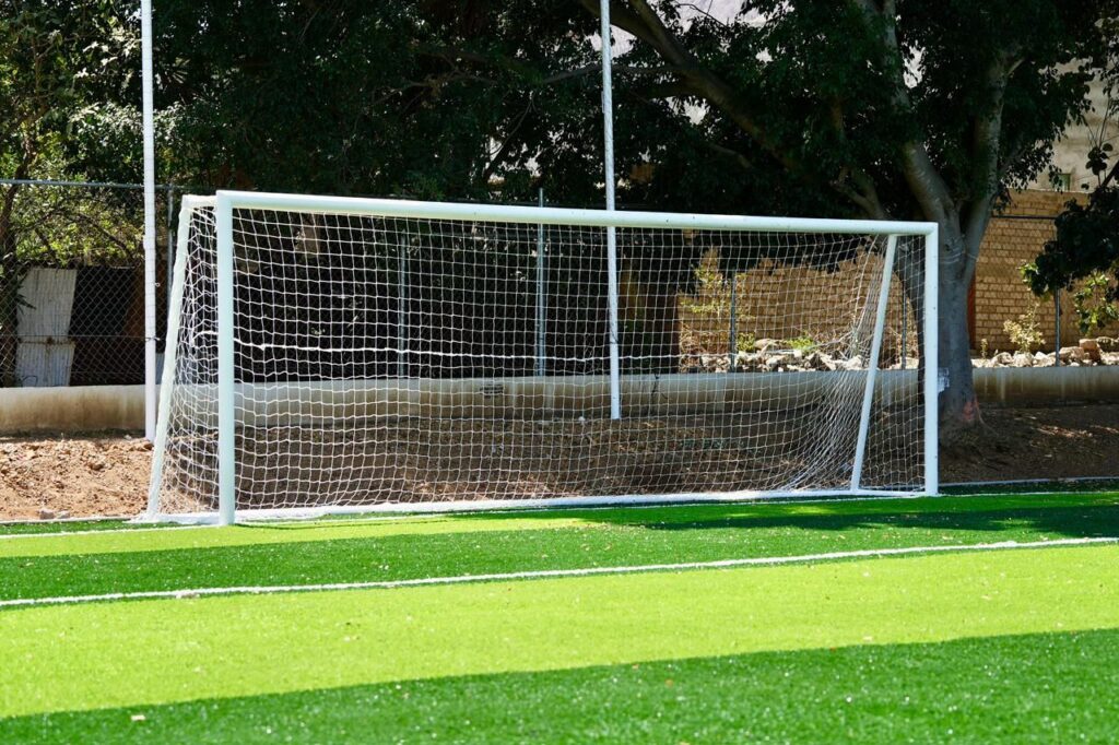 En la cancha de futbol, que cuenta con más de 5 mil metros cuadrados, se realizó la instalación de porterías profesionales metálicas y cercado perimetral.