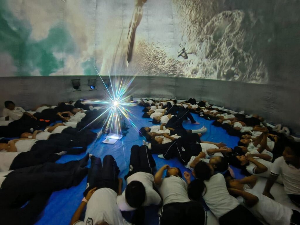 Visitamos la Escuela Primaria Lic. Wilfrido C. Cruz, la Escuela Primaria Leona Vicario en su turno matutino y la vespertina Independencia, así como la Escuela Secundaria General, donde nuestras niñas, niños y jóvenes vivieron proyecciones inmersivas que los acercaron al universo de una forma emocionante, despertando su curiosidad y asombro.