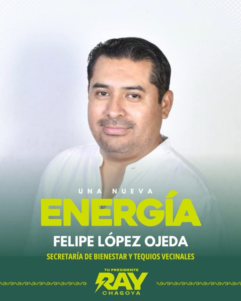 - Secretaría de Bienestar y Tequios Vecinales: Felipe Lopez Ojeda