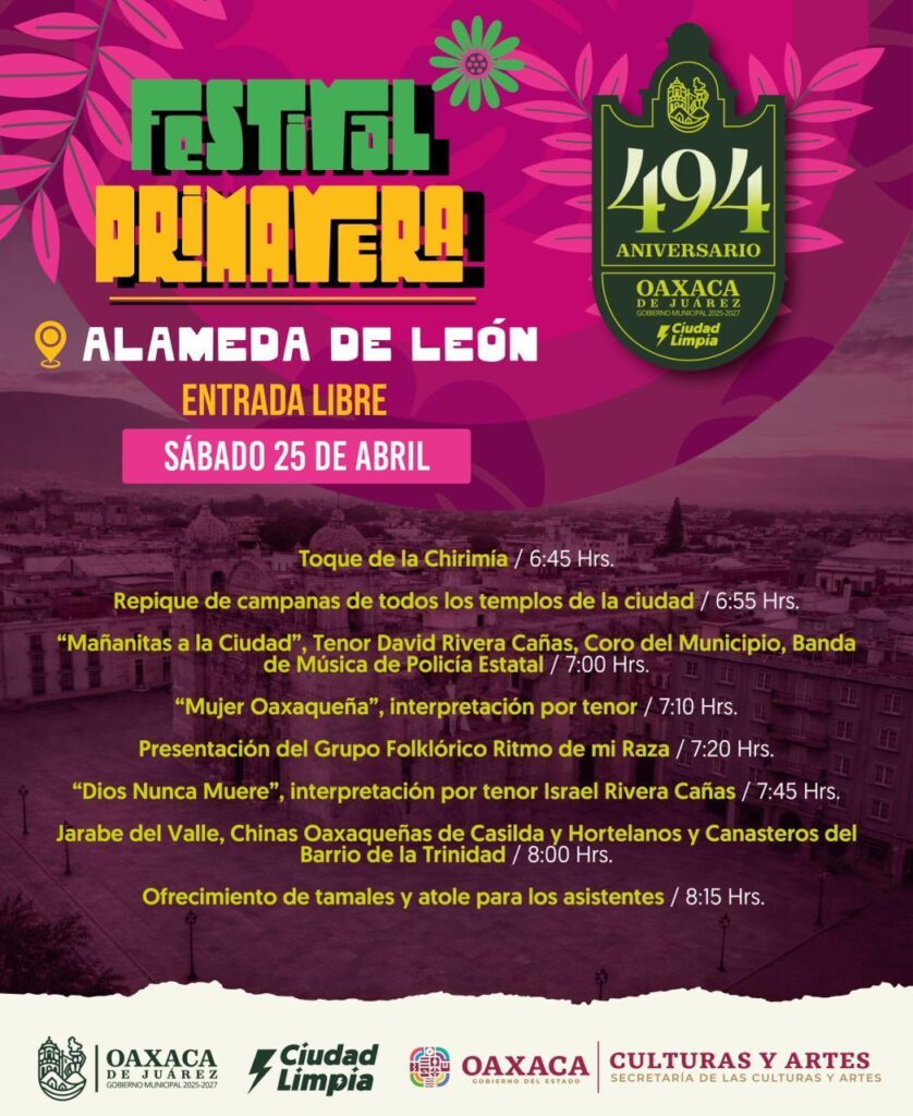 494 Aniversario de la Ciudad de Oaxaca: Programa de Actividades (25 de Abril)