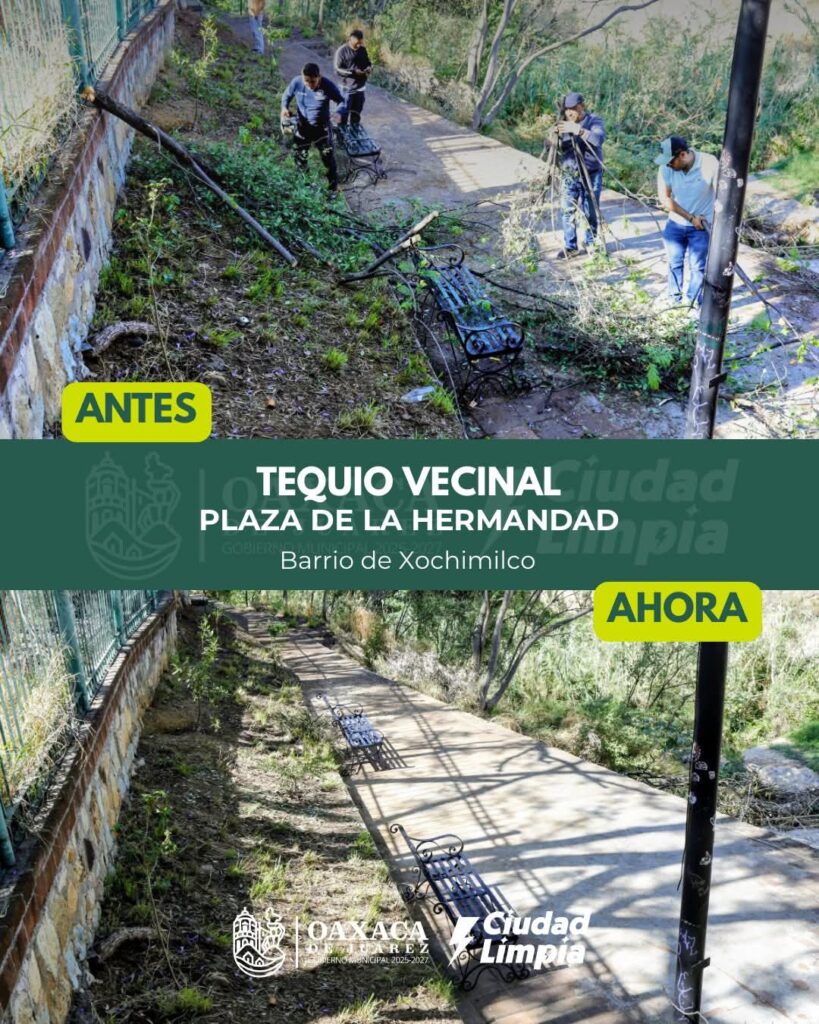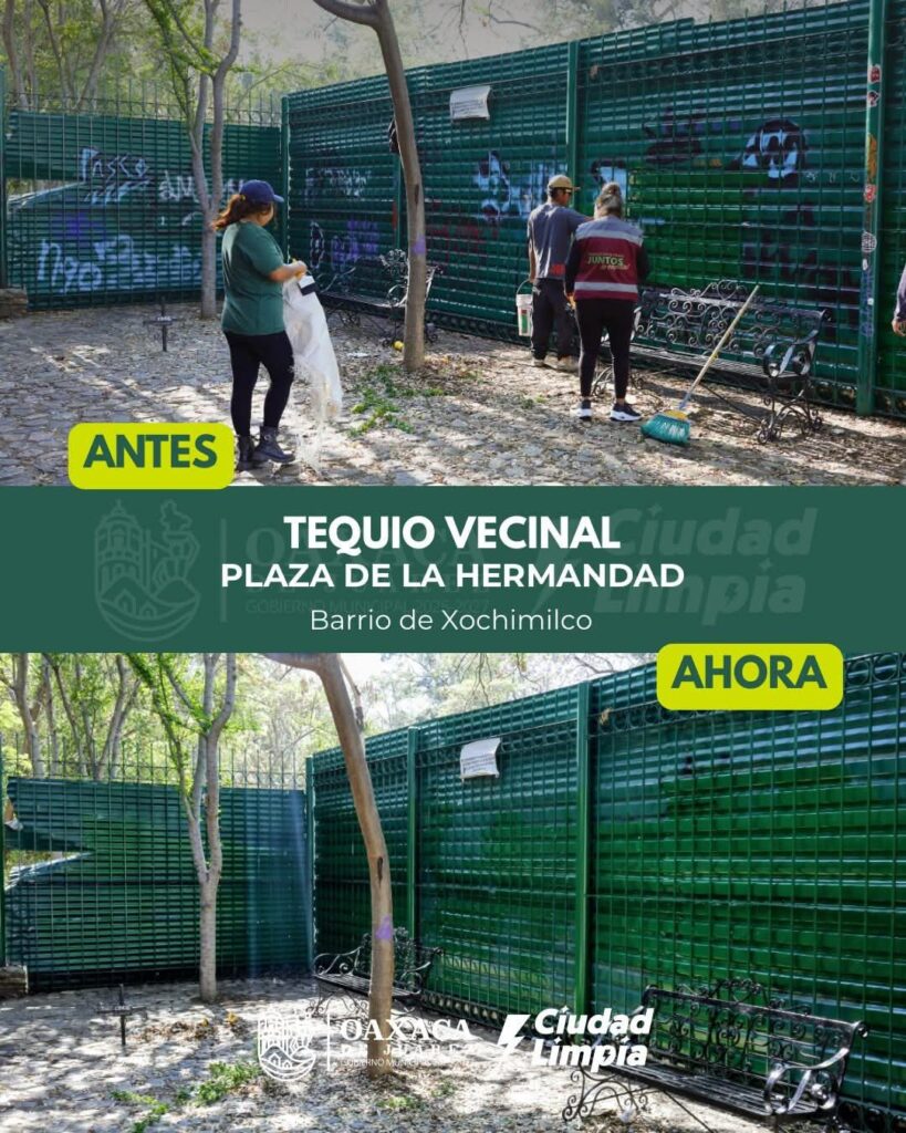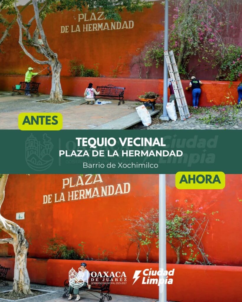 Esta mañana, en la Plaza de la Hermandad, en el barrio de Xochimilco, se llevó a cabo un Tequio Vecinal con la participación activa de vecinas y vecinos, en coordinación con personal municipal, sumando esfuerzos para limpiar y mejorar este espacio.