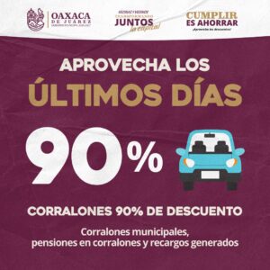 Durante el mes de julio, el Gobierno Municipal ofrece hasta 80% de descuento en multas y recargos Oaxaca de Juárez,...
